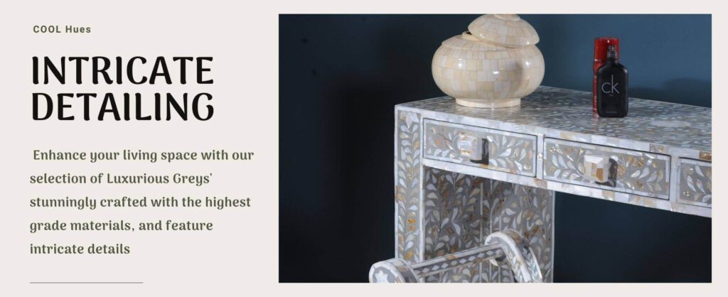 Quality craftsmanship: Bone Inlay Interior is known for its high-quality furniture crafted by skilled artisans. Investing in gray furniture from Bone Inlay Interior can ensure durability, functionality, and long-lasting appeal.