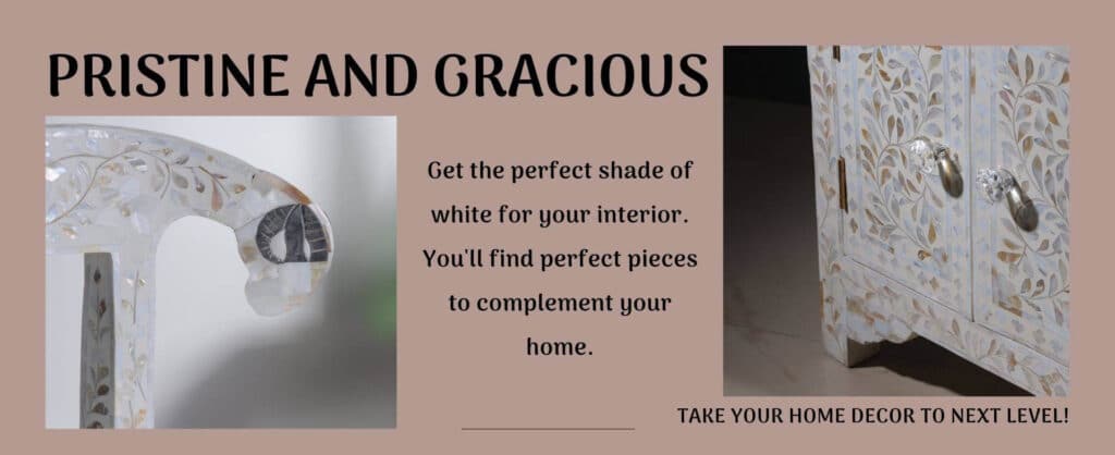Quality Craftsmanship: Bone Inlay Interior is known for its high-quality craftsmanship, and their white furniture is no exception. Each piece is carefully crafted using traditional techniques and high-quality materials, ensuring that it is built to last.